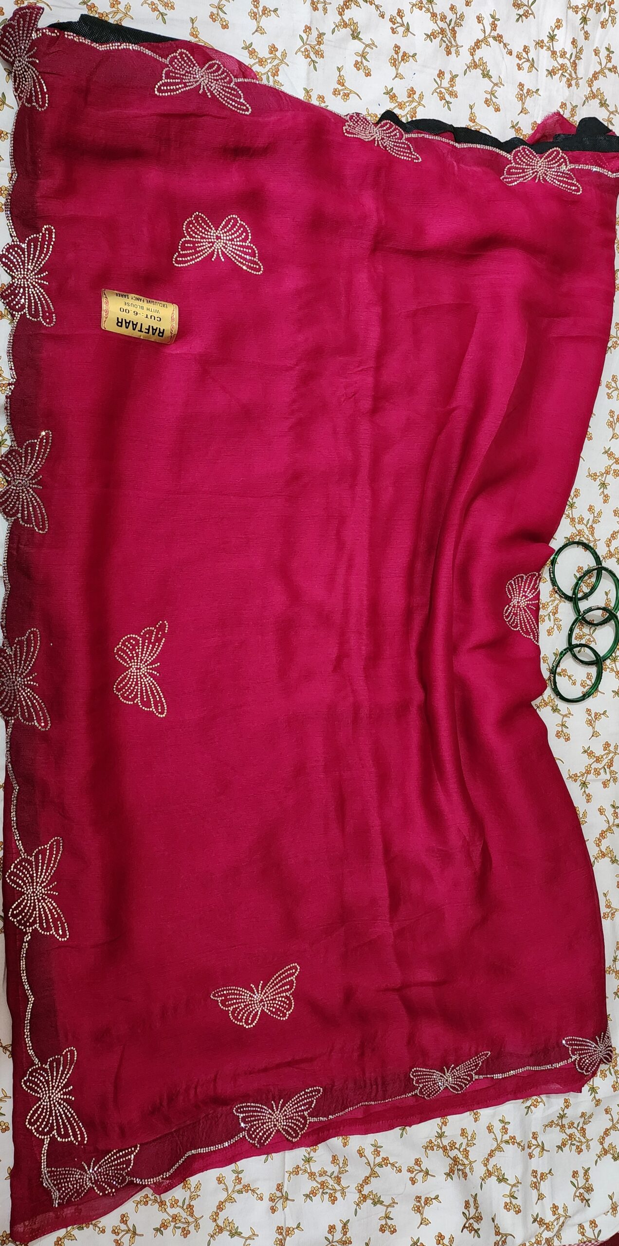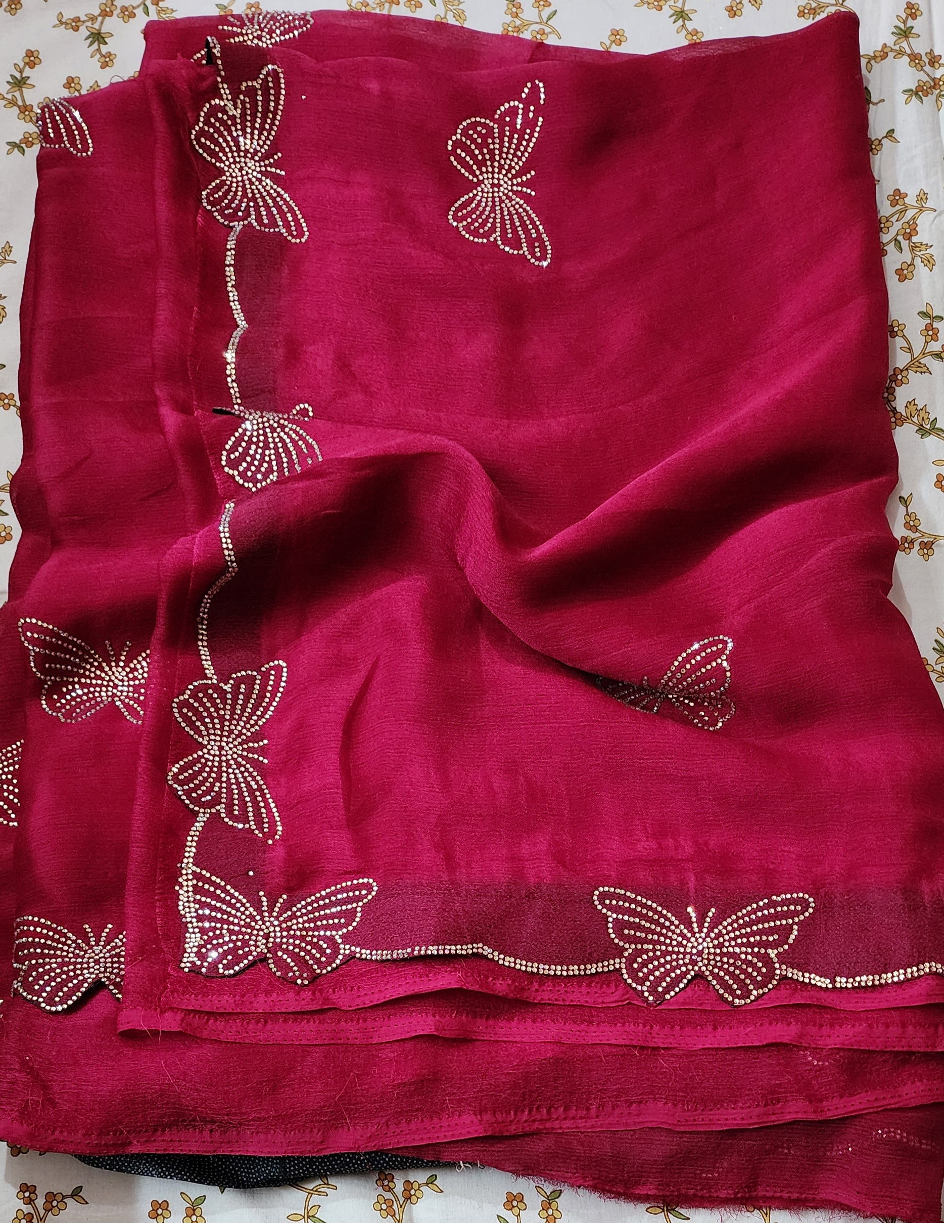 Beautiful and Light Weight Saree With Butterfly Stone Work & Running Blouse.