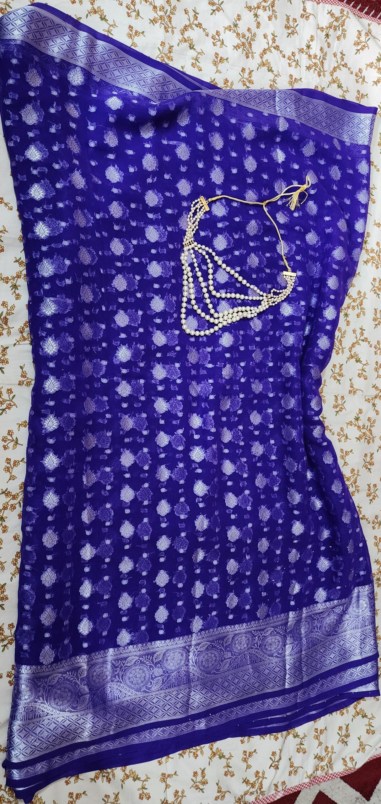 Beautiful Georgette Silver Buti Fancy Soft Saree.